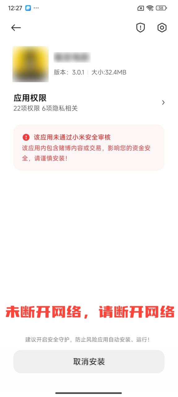 3.取消系统默认风险提示后,再次点击apk安装即可